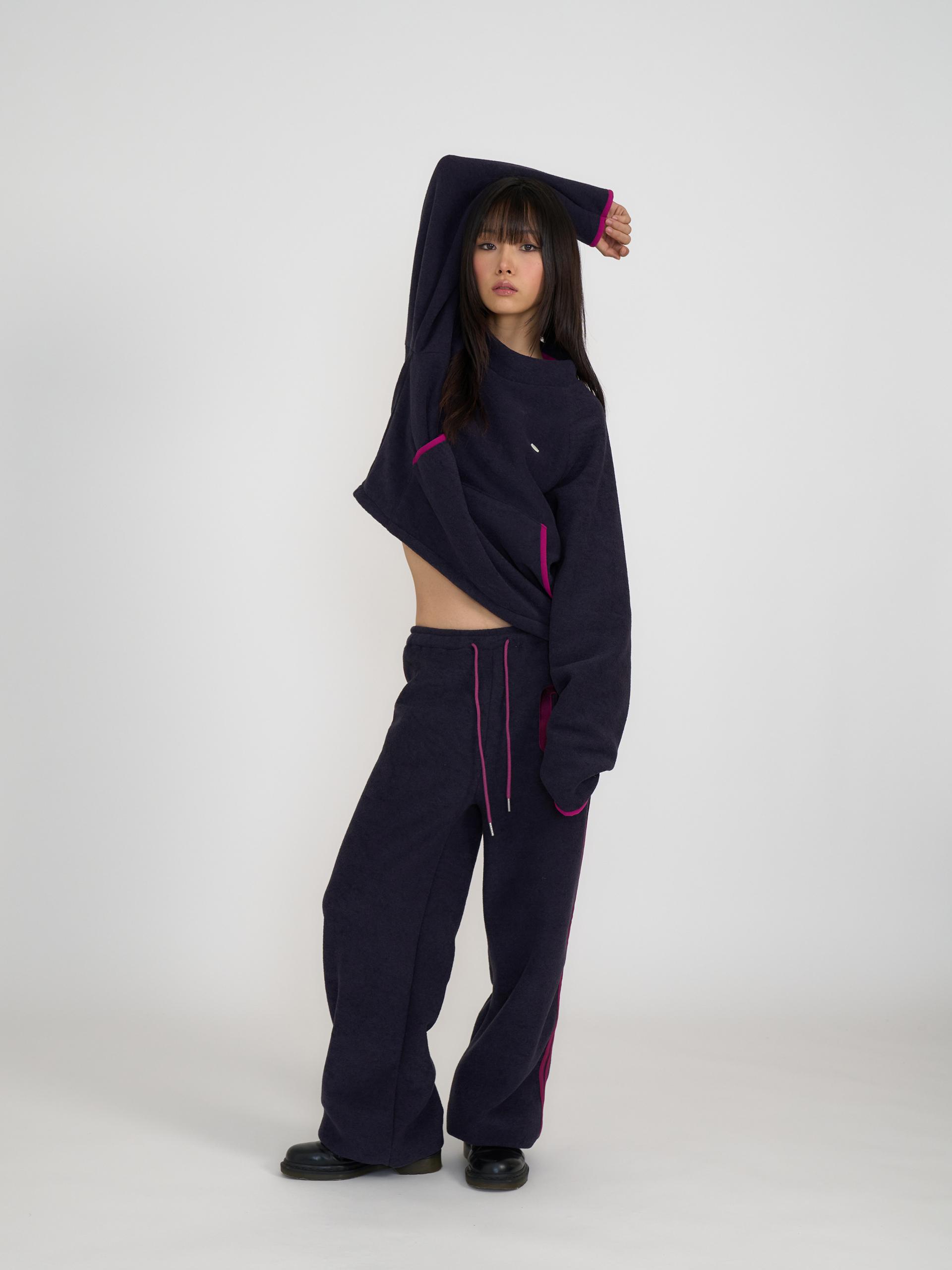 독특한 텍스처의 기모 원단으로 제작되어 부드럽고 따뜻한 착용감을 제공합니다. 신축성 있는 원단과 긴 기장감, 밑단 스토퍼 디테일로 편안하게 조절할 수 있으며 컬러 포인트 자수와 라인 디자인이 스포티한 인상을 줍니다. 하프넥 레글런 롱슬리브와 셋업으로 착용할 수 있는 아이템으로 올리브와 네이비 두 컬러로 출시 되었습니다.